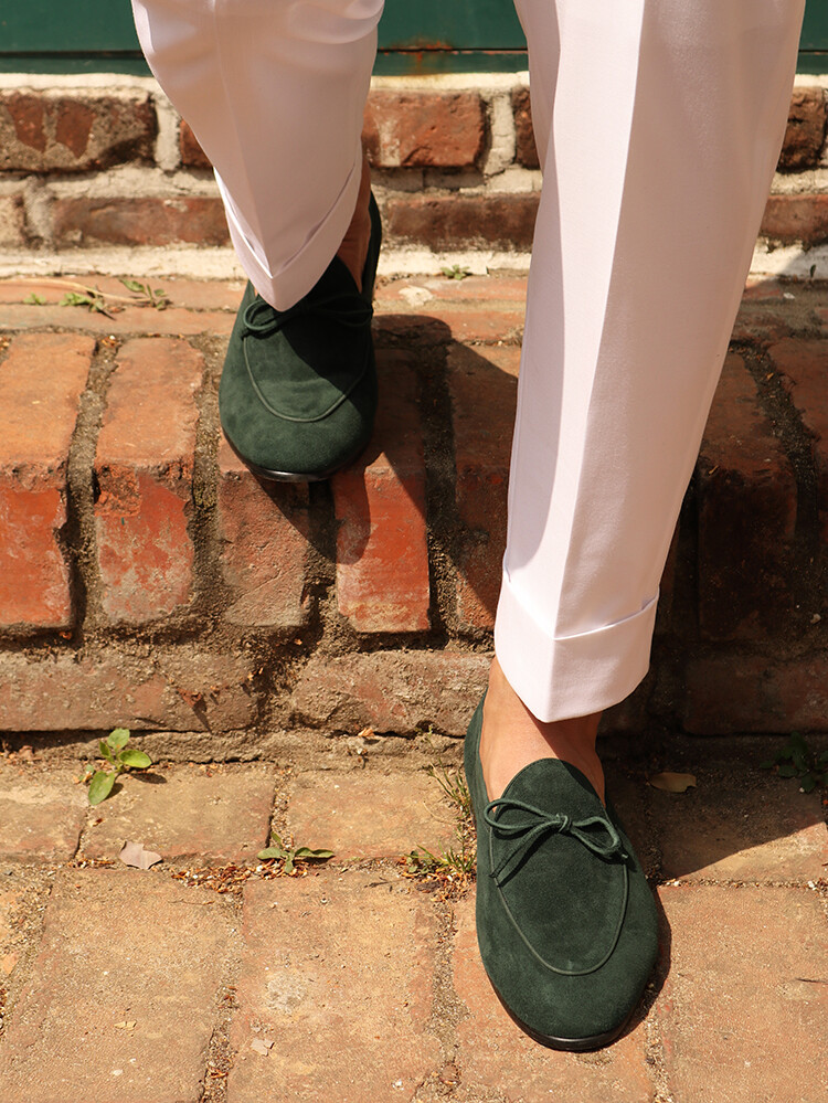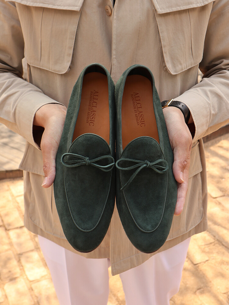 ALC047 벨지안 리본 로퍼 그린 스웨이드