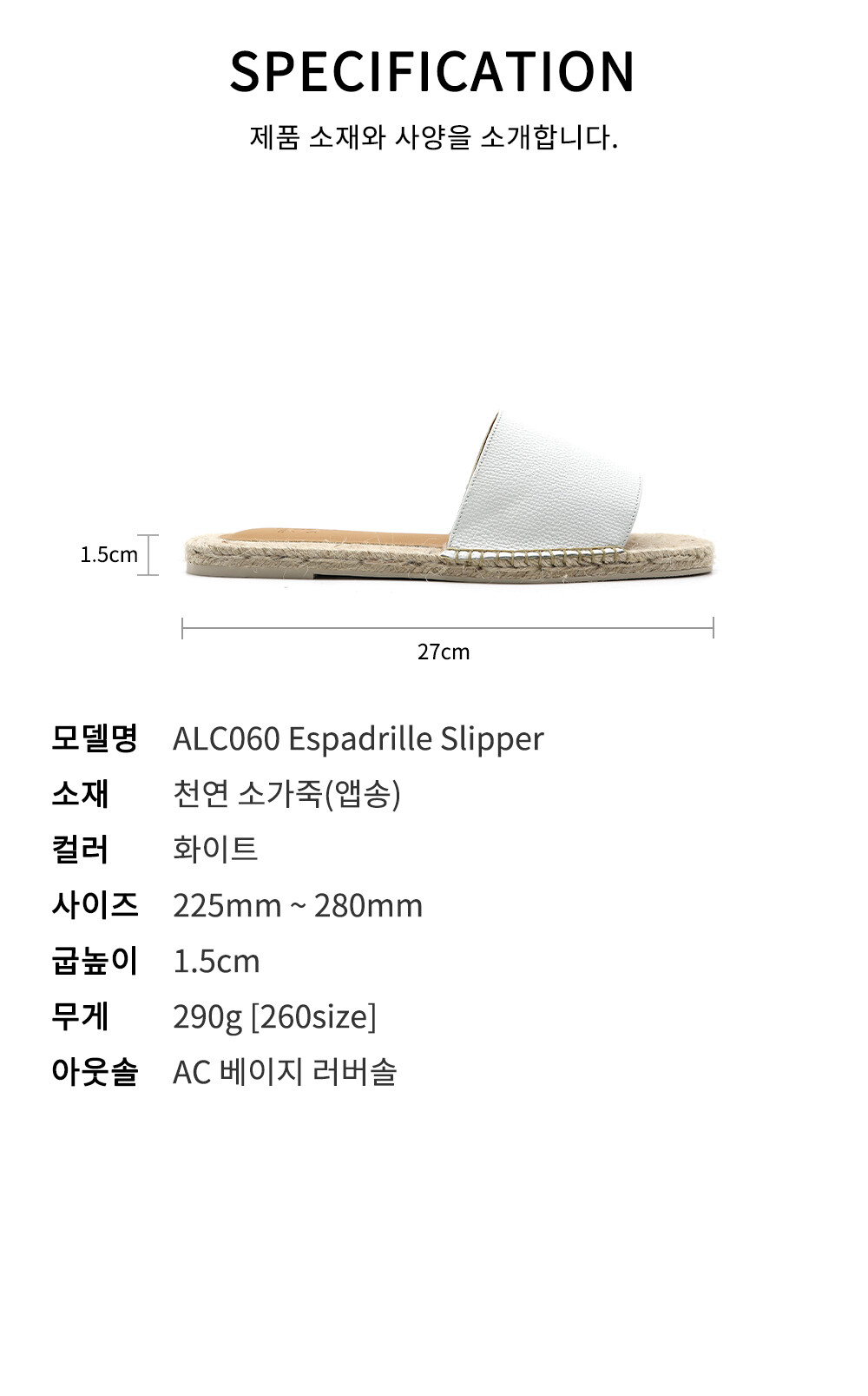 ALC060 에스파드리아 슬리퍼 화이트