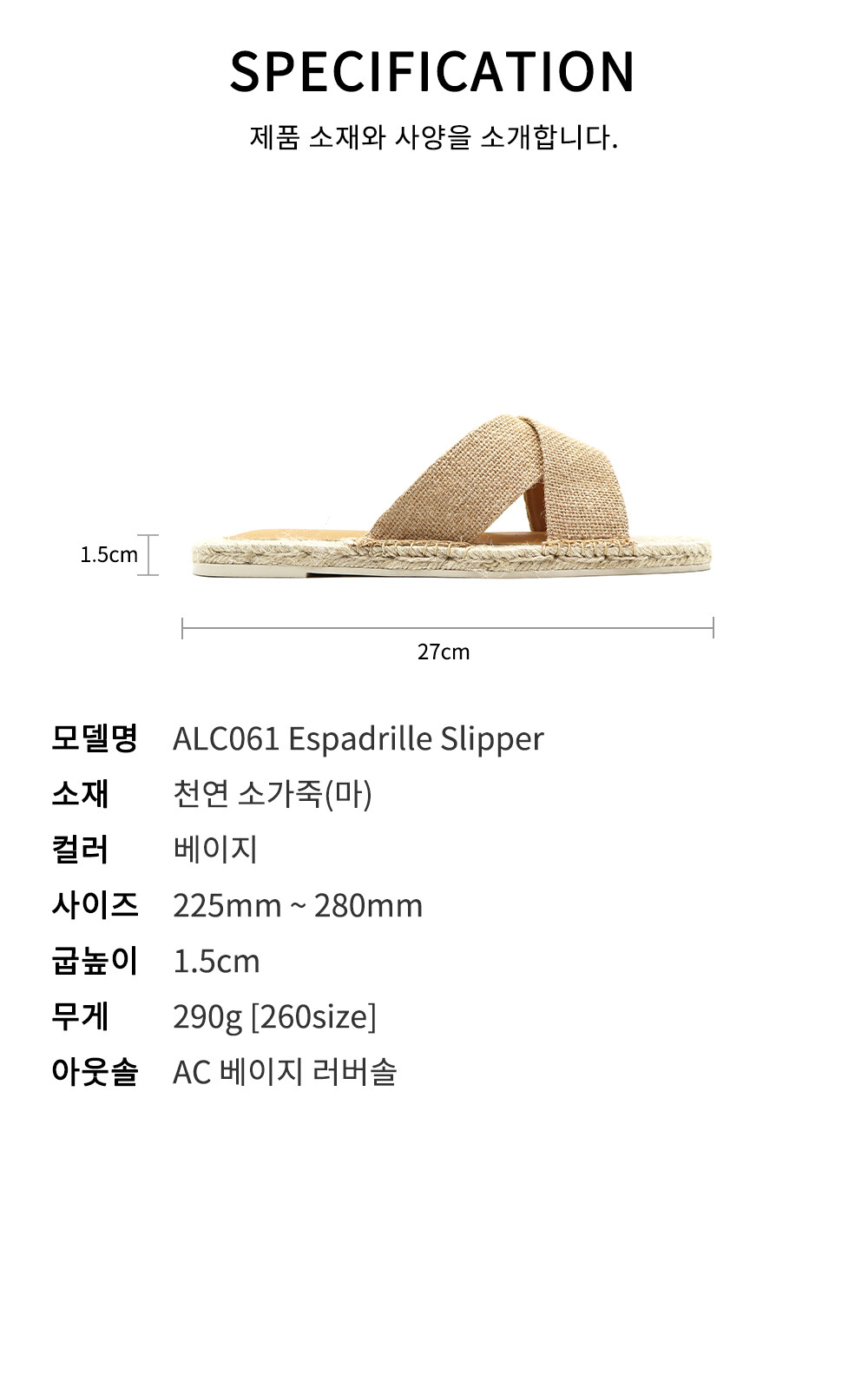 ALC061 에스파드리아 슬리퍼 베이지 마