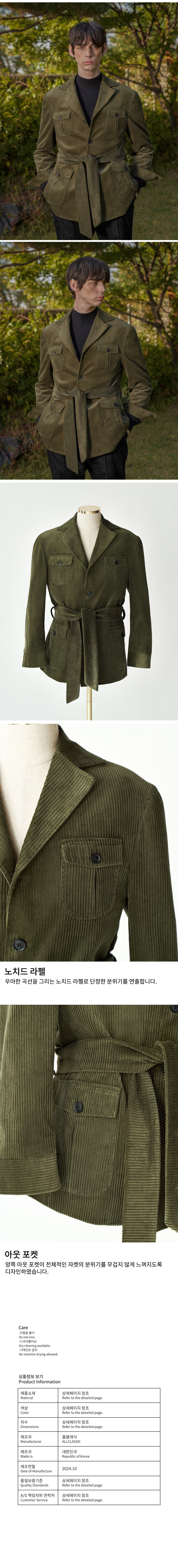 모델명 - ALCJK002 테일러드 코듀로이 사파리 자켓_khaki