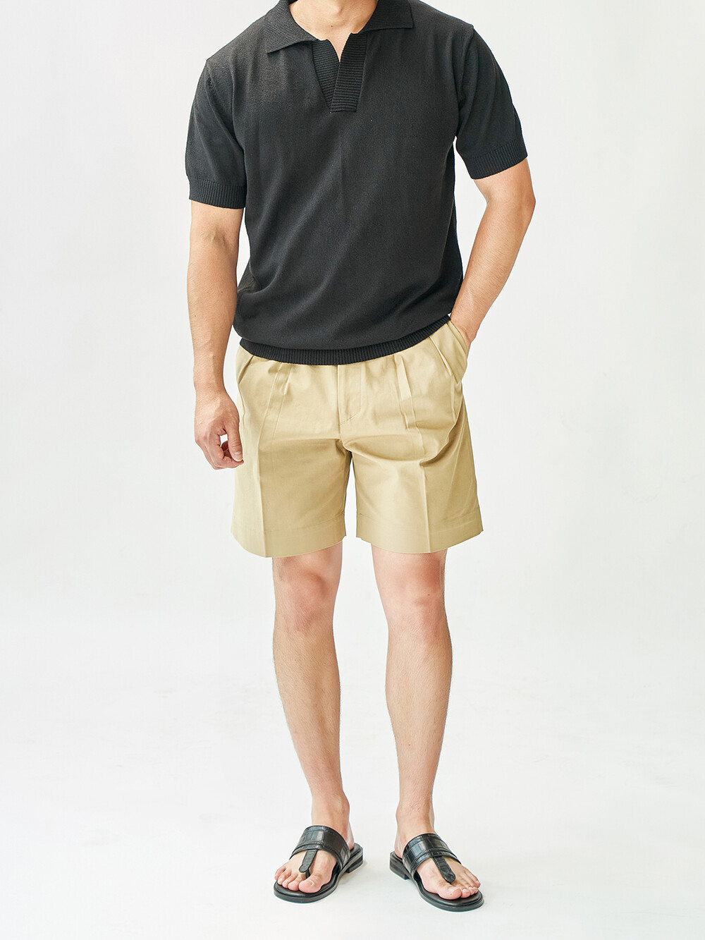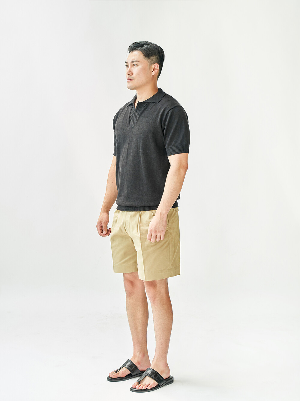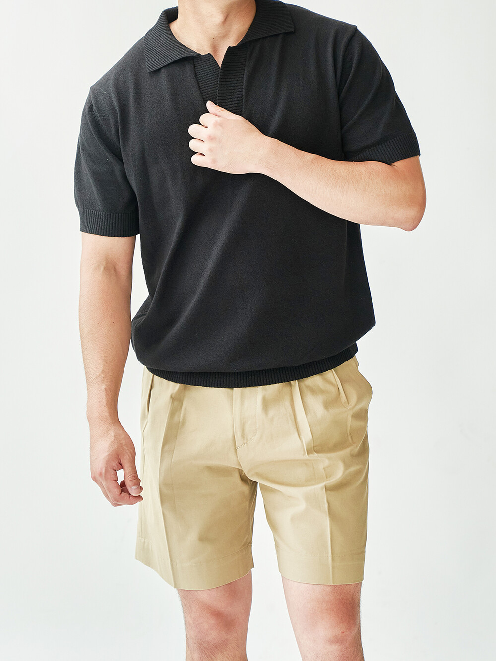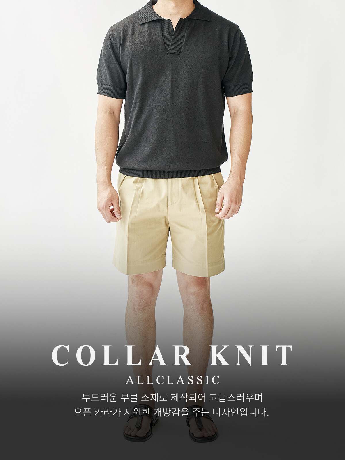 KT016 부클 오픈 카라 니트_black